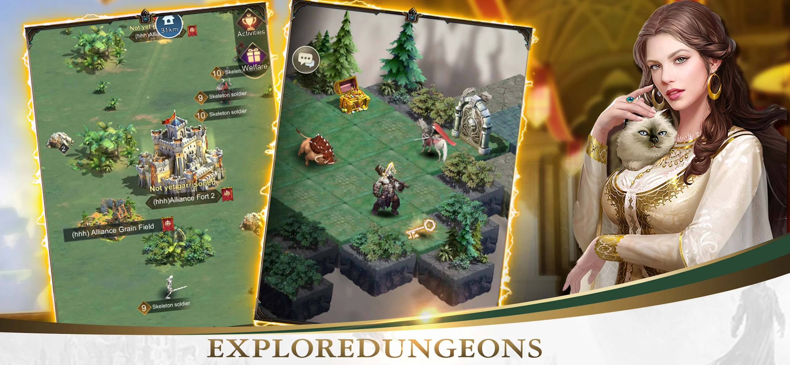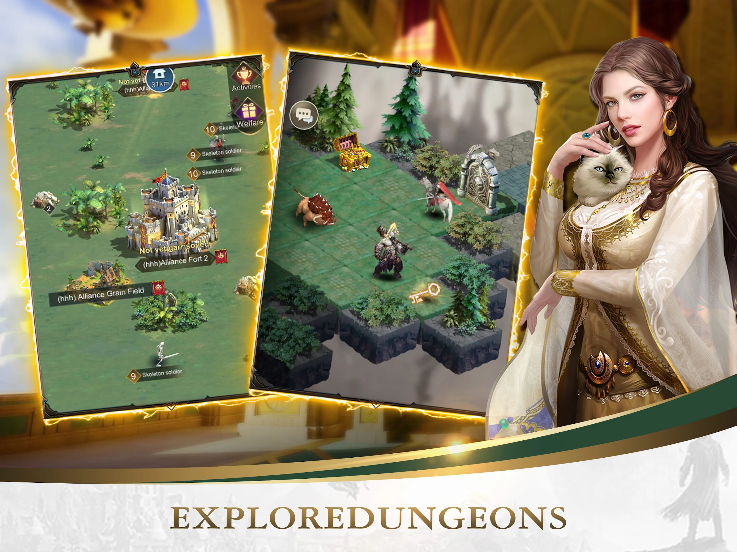 Engage in epic battles, recruit legendary heroes, and explore dungeons to build your empire through strategic warfare.