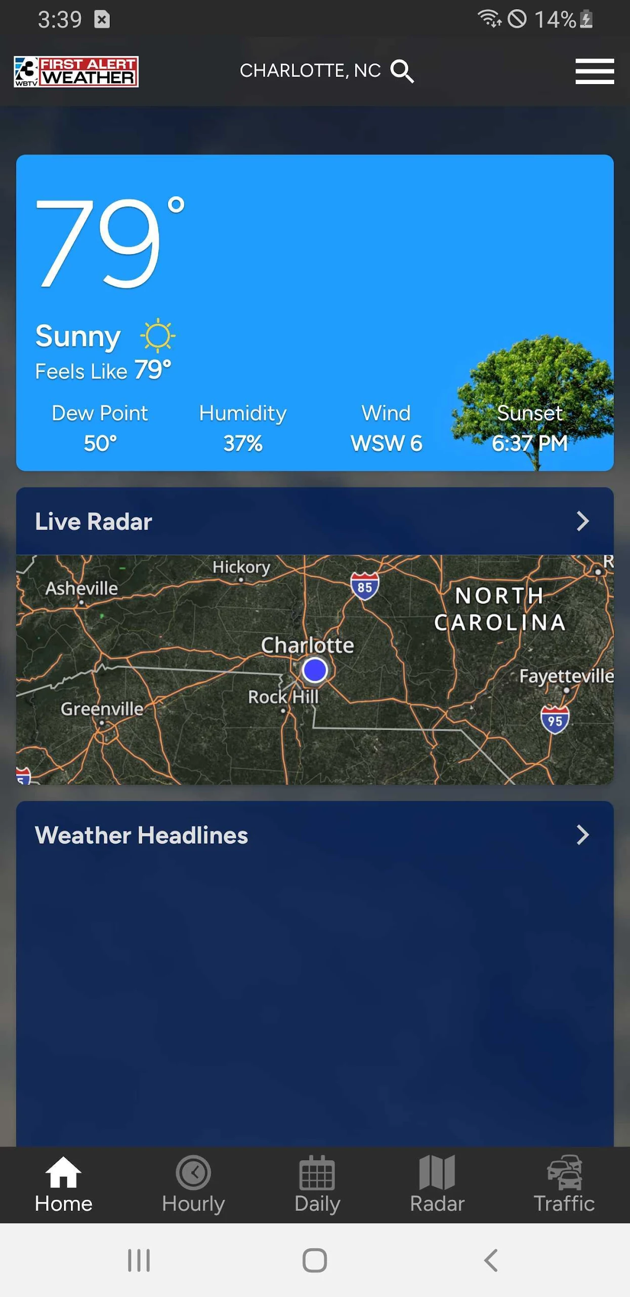 Stay informed with Charlotte’s most accurate forecasts, powerful radar, & customizable alerts for severe weather safety.