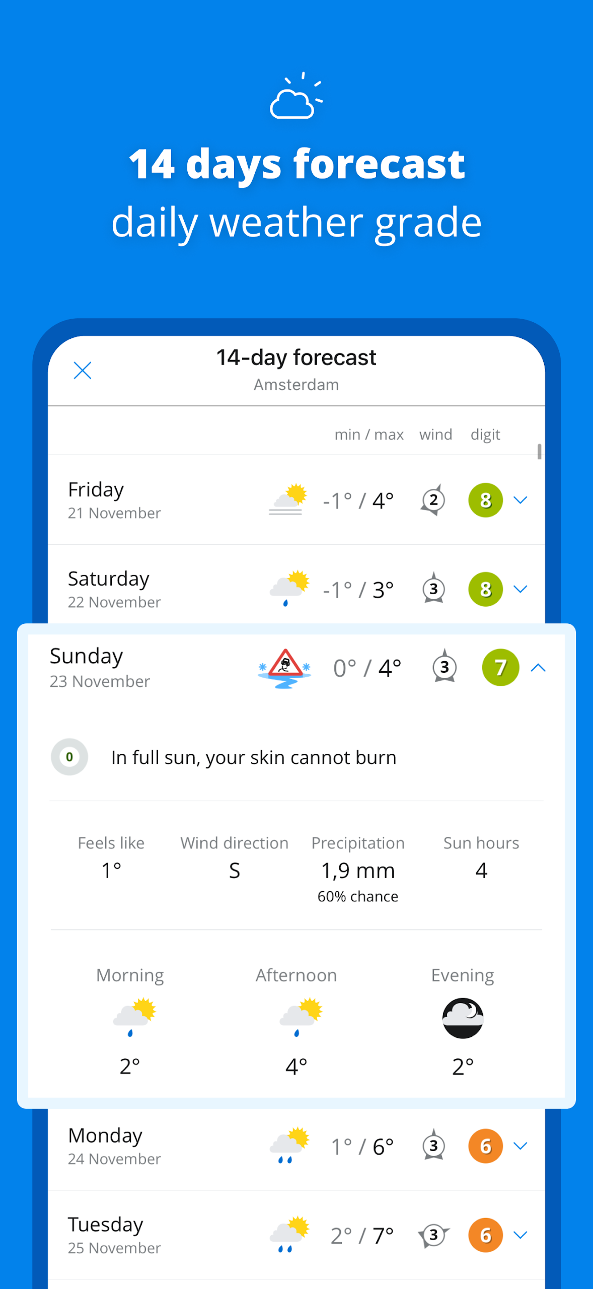 - wind strength and sunlight details