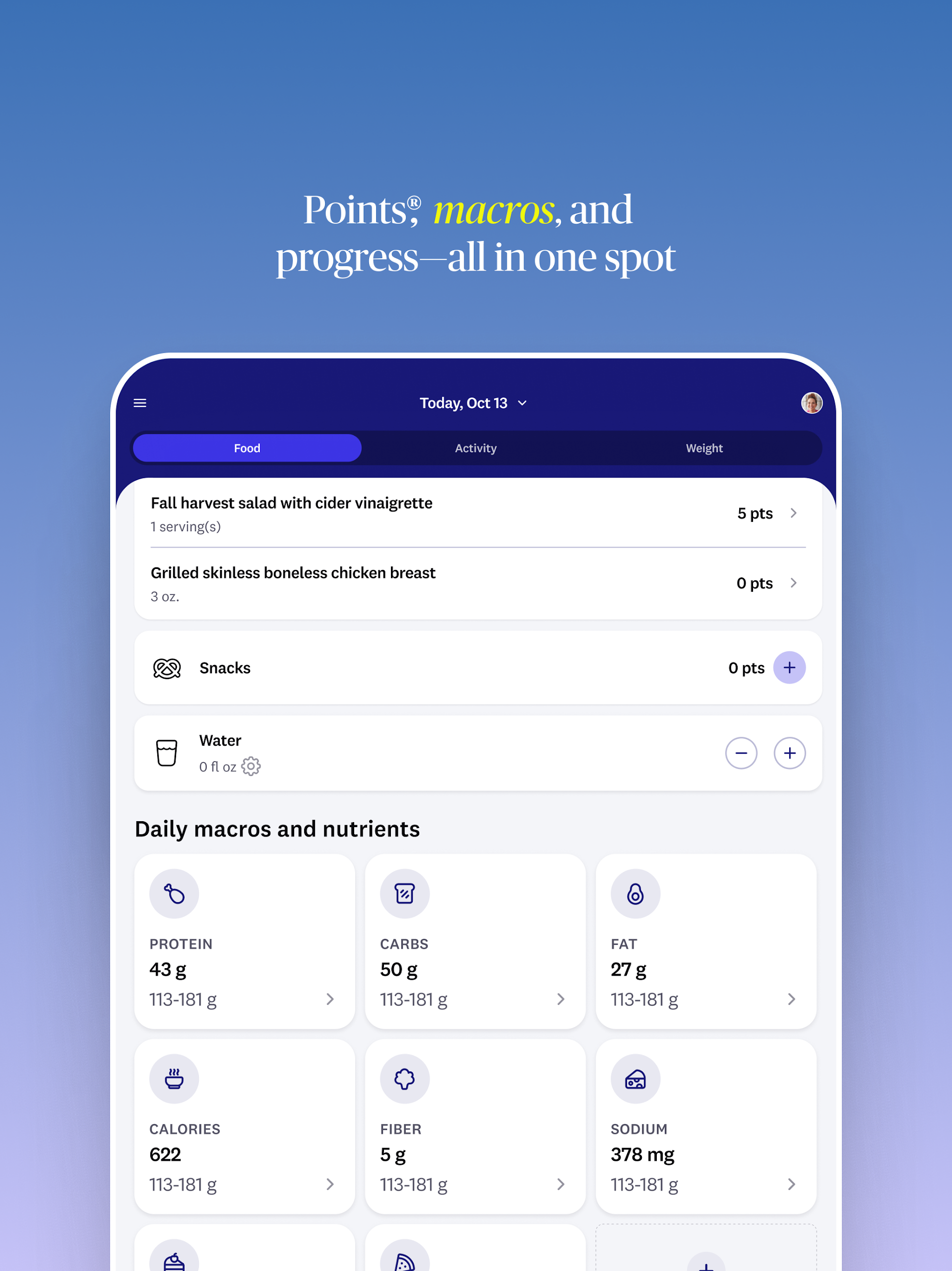- NEW! Use your camera to monitor meals and their corresponding Points® value