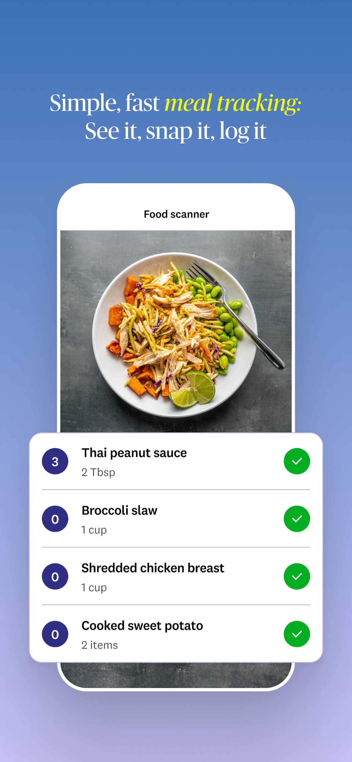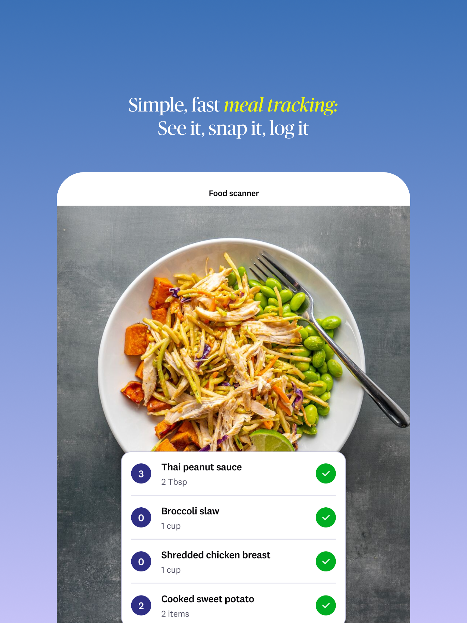 Our team includes nutrition and behavioral scientists, registered dieticians, clinical researchers, and more. Together they help you overcome common weight-loss hurdles—like stress-eating or late-night snacking—while our exclusive Points system makes nutrition easier—so easy that healthier eating will feel like second nature. After you sign up, you’ll answer a few questions to get a plan customized for you, and build healthy habits with proven behavior change techniques.