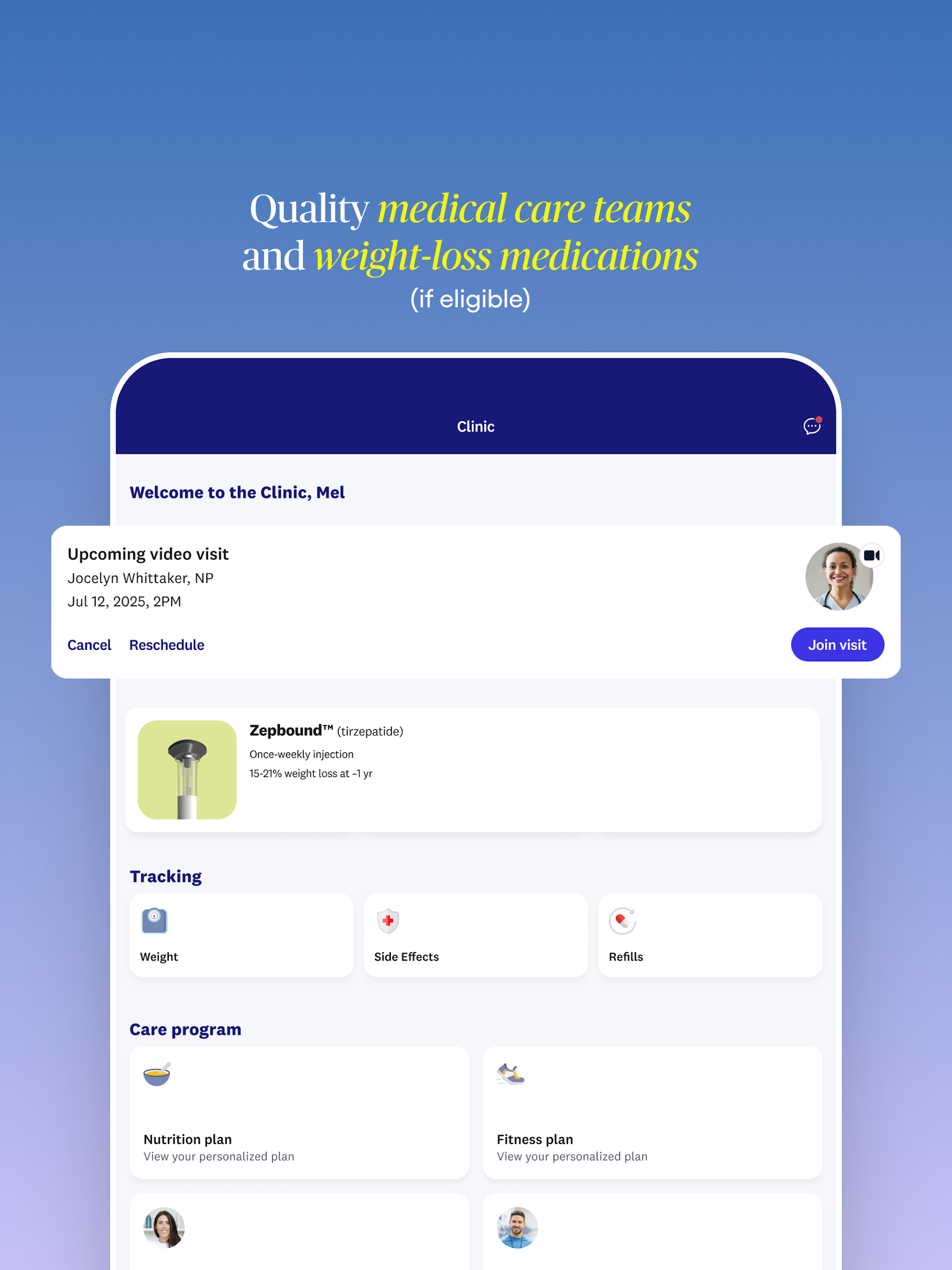 - If qualified, gain access to a customized prescription medication plan along with one-on-one check-ins from a specialized clinical care team.