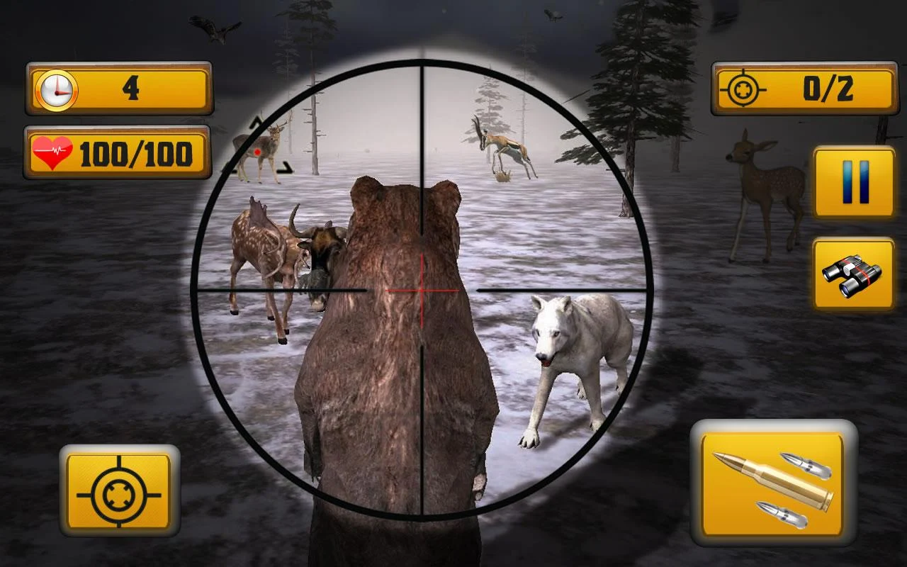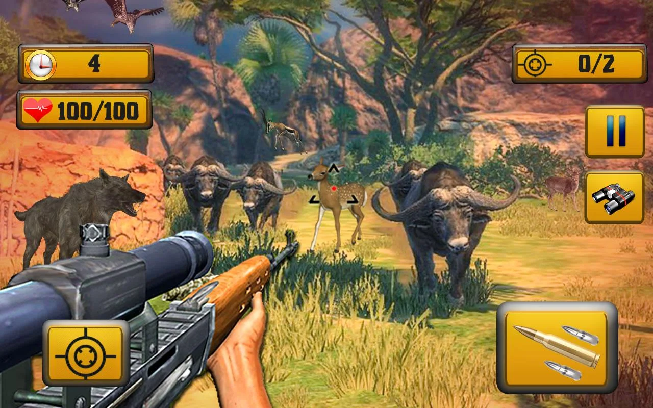 Steady your aim and secure precise headshots before the fierce beasts can attack you. Target some of the most dangerous wild animals like wild foxes, deer, wolves, wild pigs, wild rabbits, and various birds. The game offers multiple sniper guns, allowing you to complete levels and unlock new weapons. Each animal presents several levels to conquer in terms of hunting points.