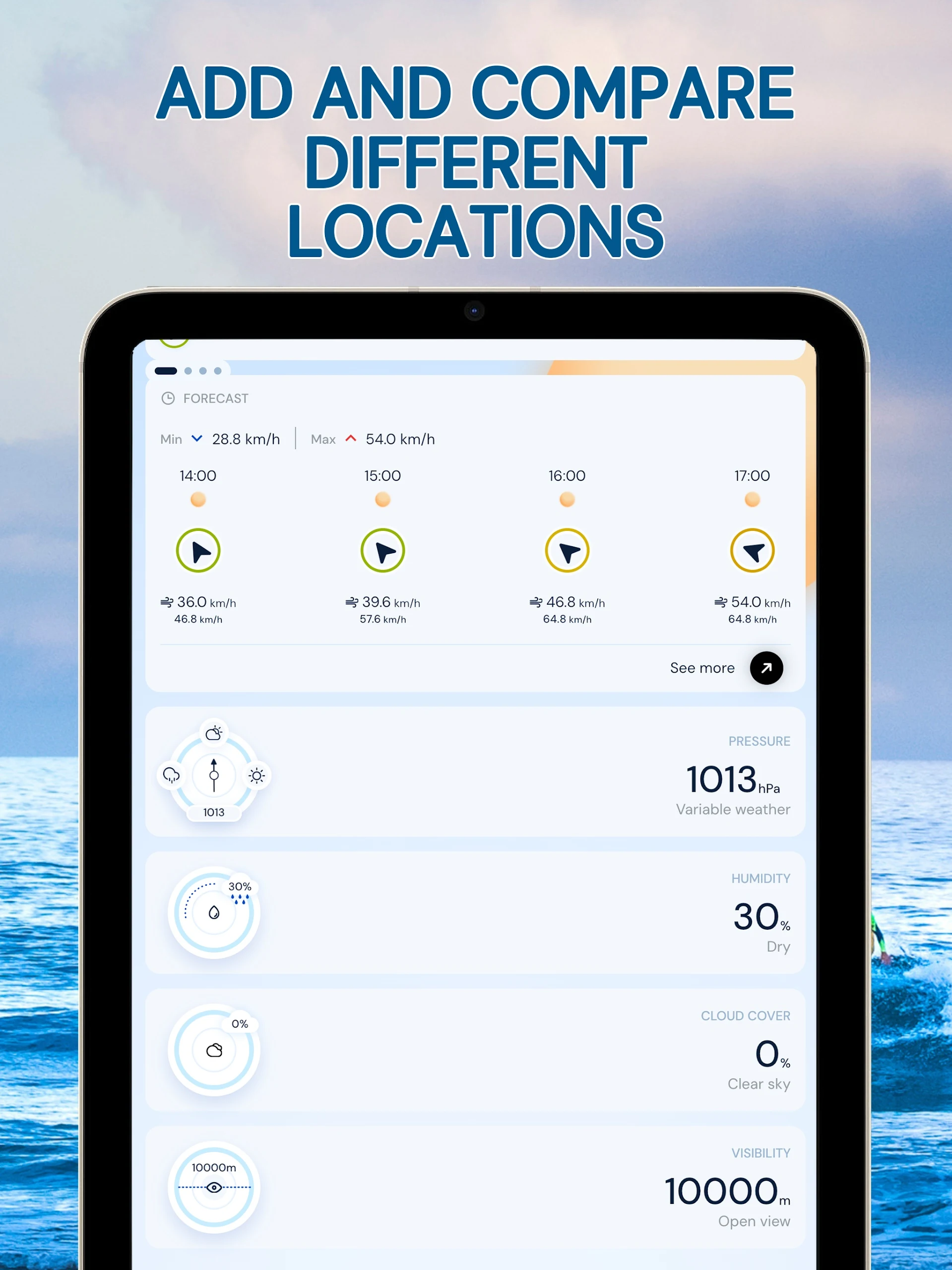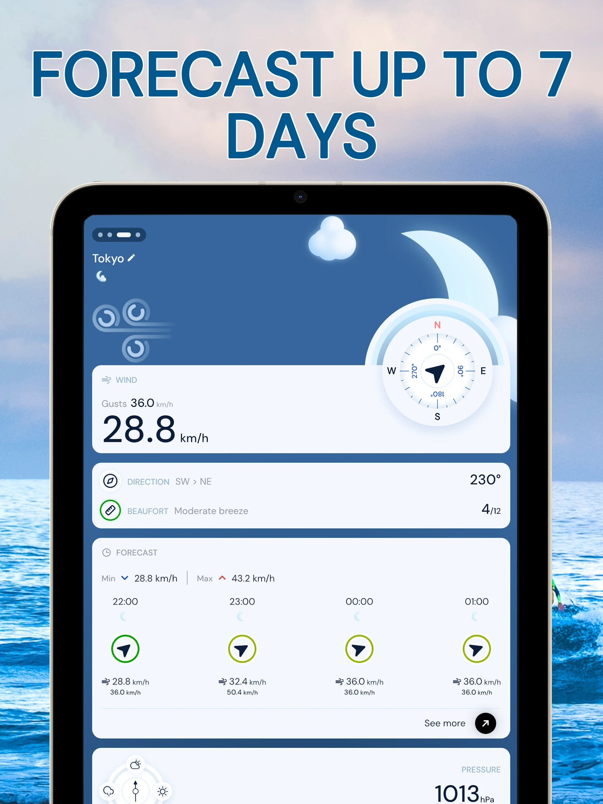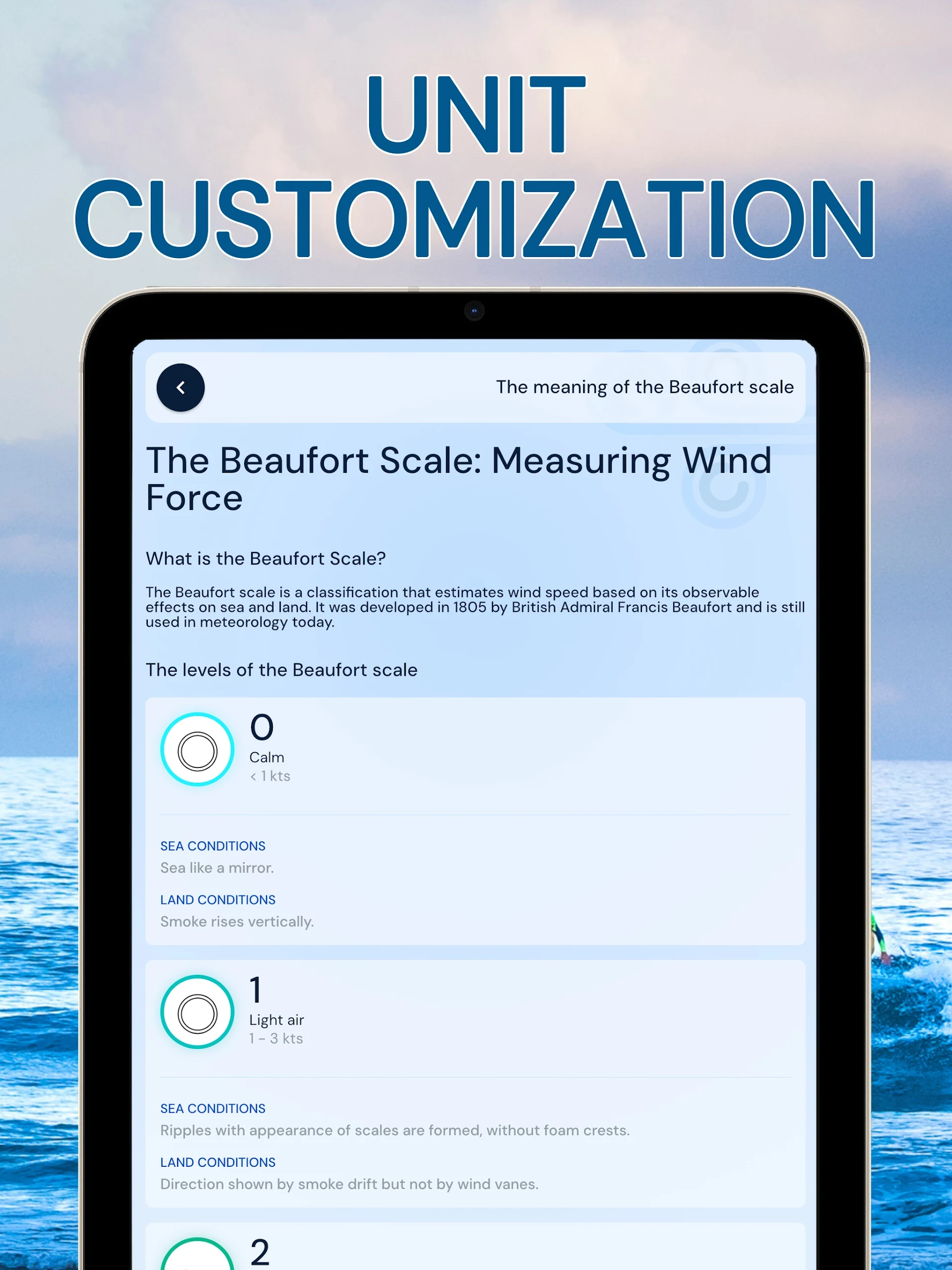 • Global Unit Support – km/h, m/s, knots, mph, Beaufort scale with built-in explanations.