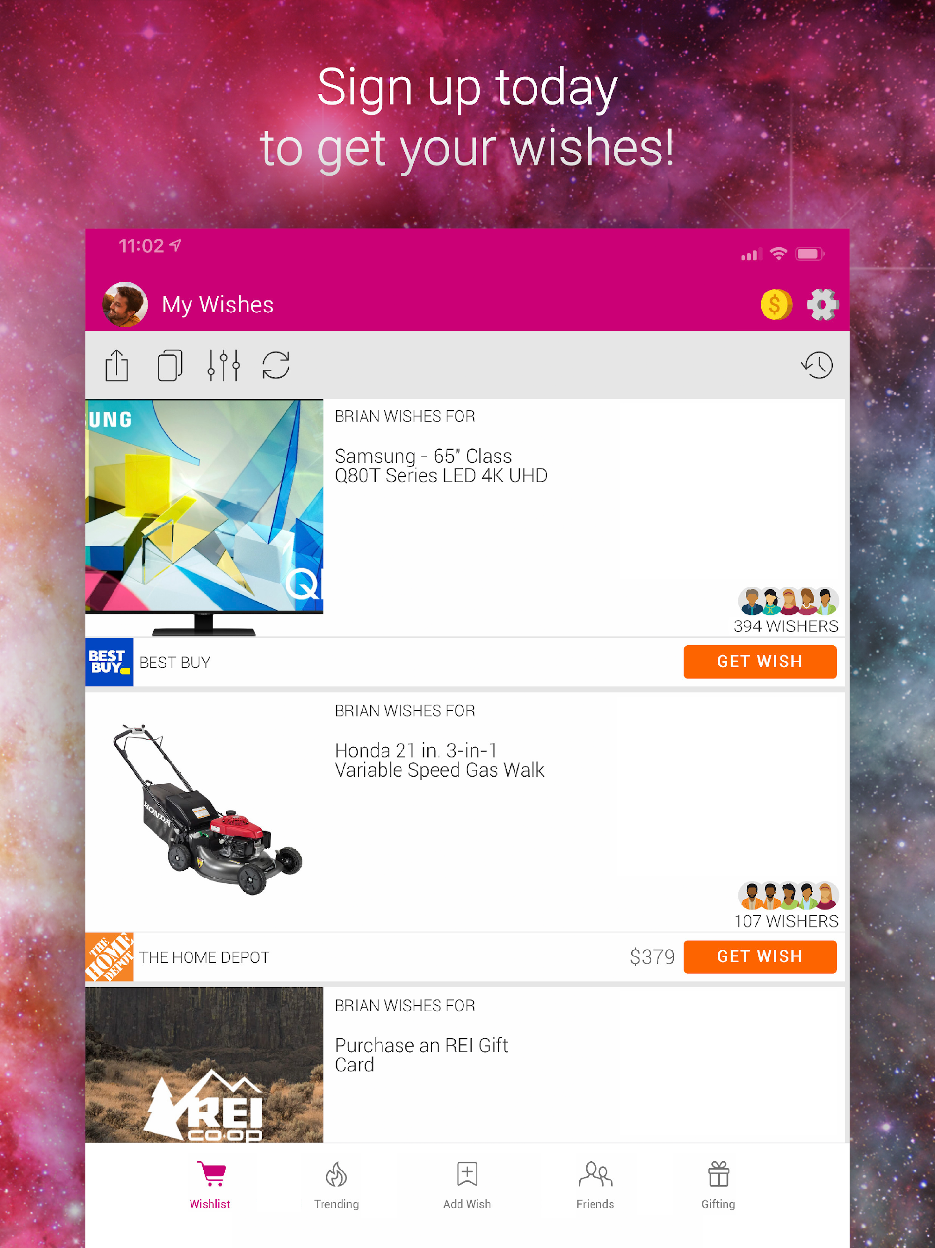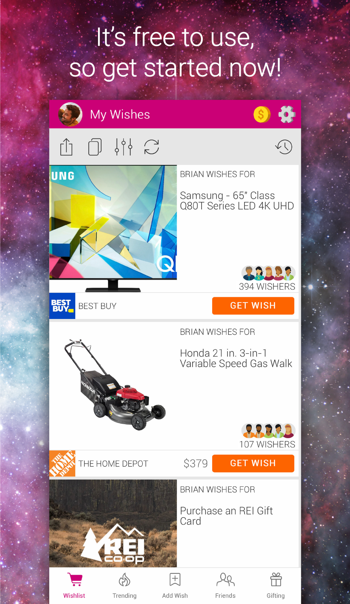 • Maintain privacy on your wishes or share them with friends, family, or fans to facilitate group gifting.