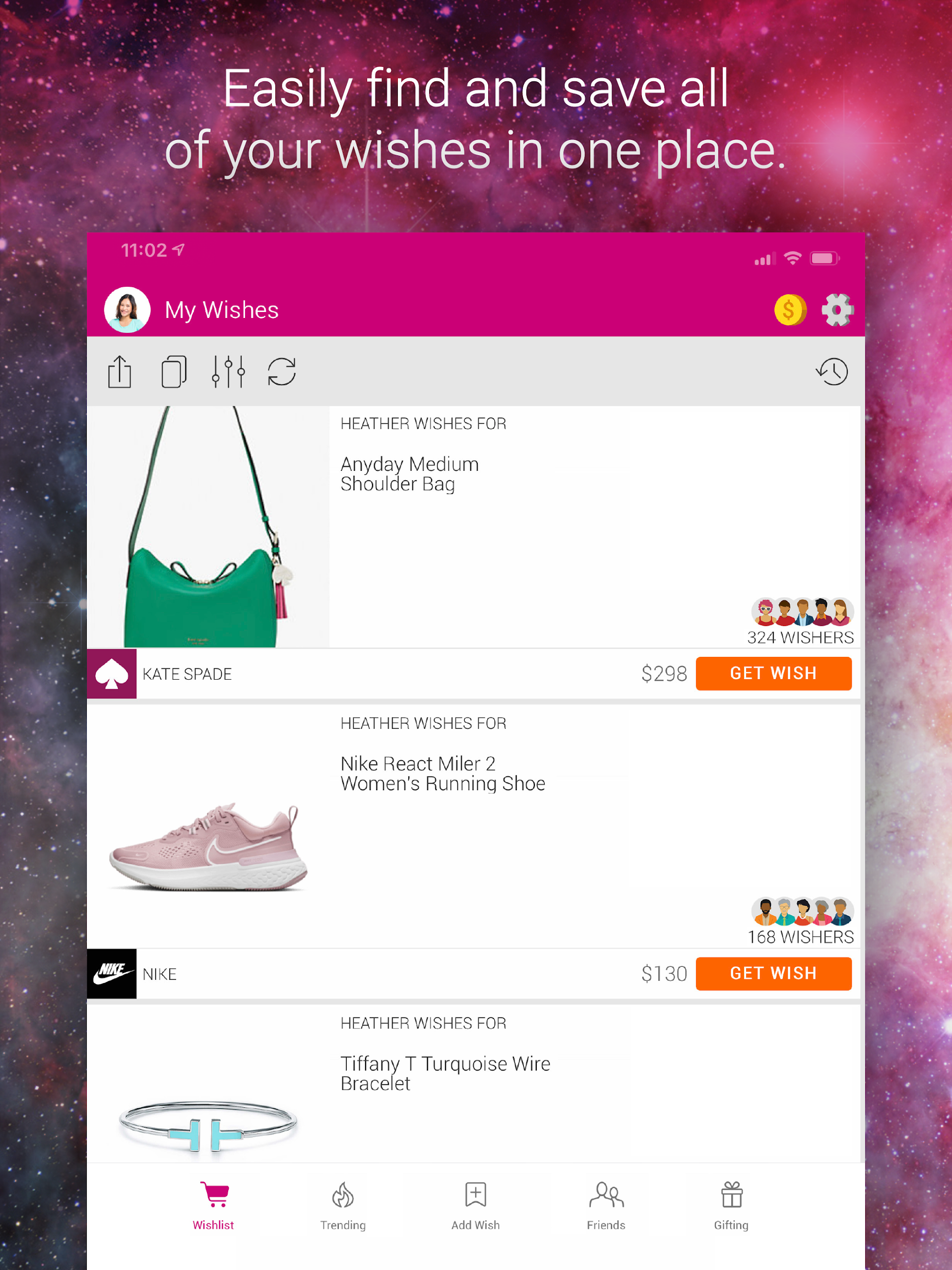 • Discover and curate items from countless retailers, crafting your ideal wishlist or gift registry.