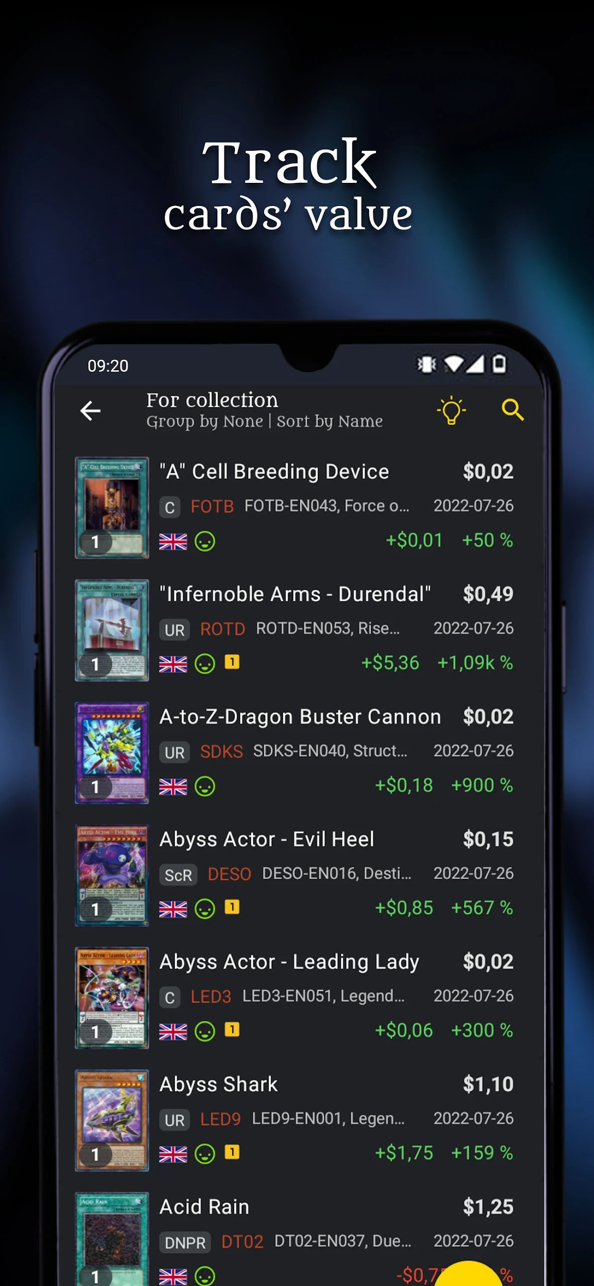 - Monitor Yu-Gi-Oh! cards that are increasing or decreasing in value