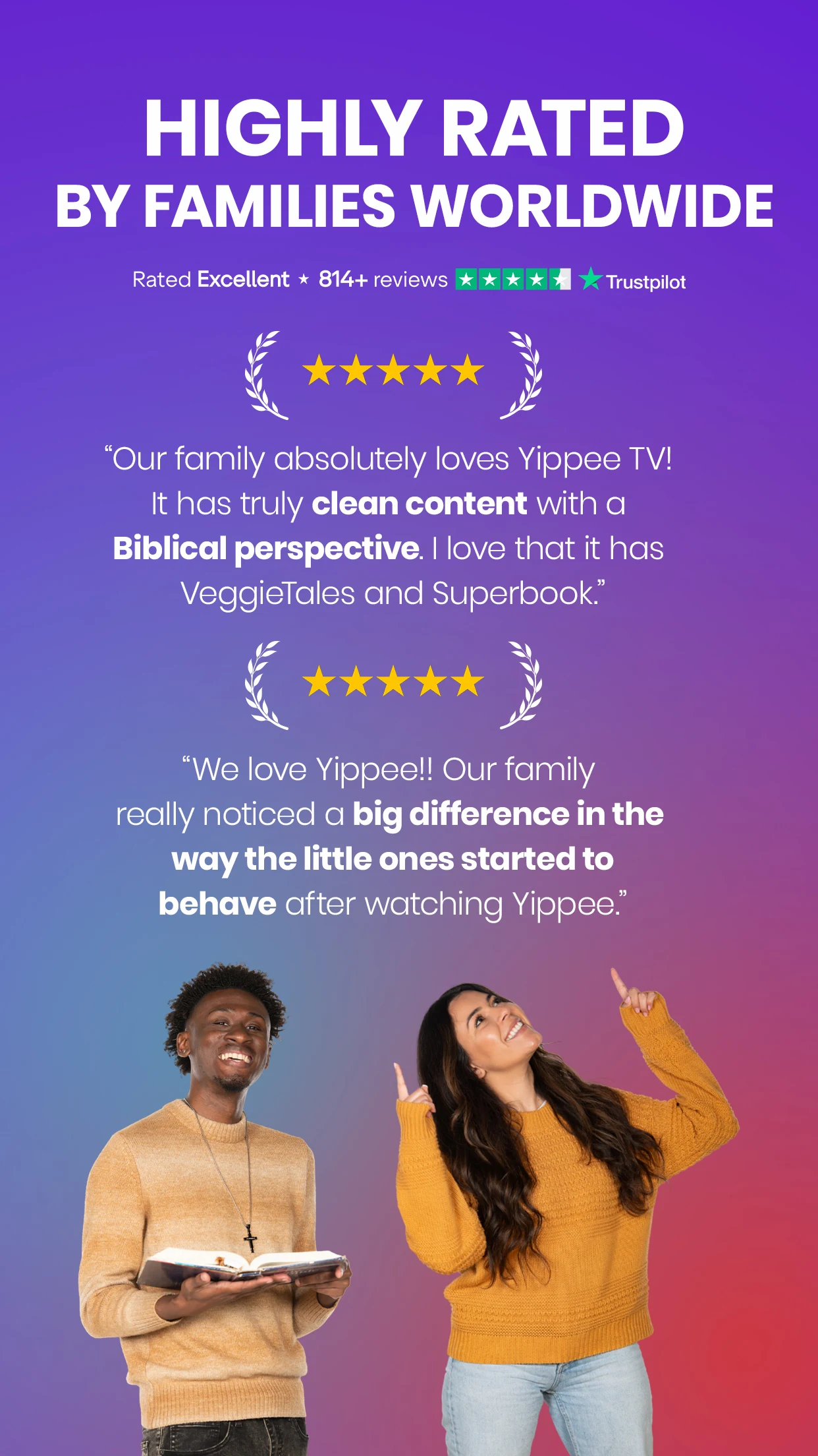 Designed specifically for children aged 2-12, Yippee TV offers curated content that’s tailored for Christian families with young kids. Every show, from animated Bible stories to educational series, reinforces Christian values through: