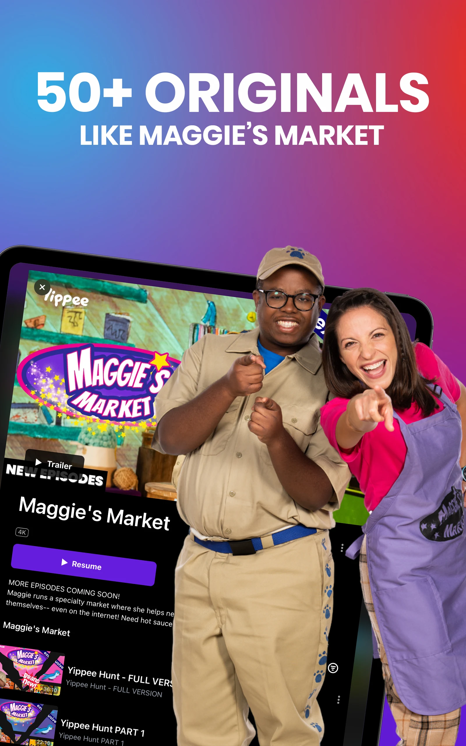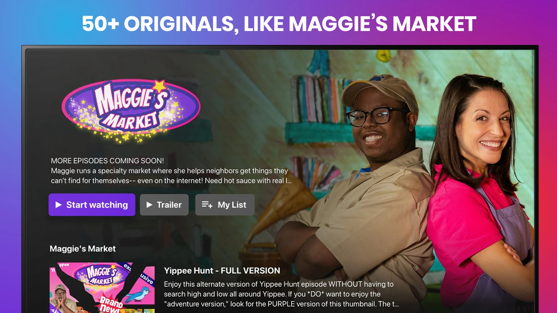 Like Yippee & Minno, they’re available on streaming almost anywhere your family watches TV, including iOS, Android, and Roku devices. You can stream from multiple devices at once.