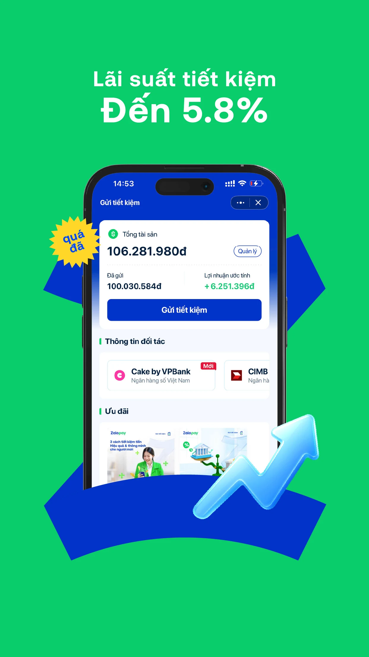 · Free money transfers in Zalo chat or via phone/address book. Easily withdraw money to linked banks.