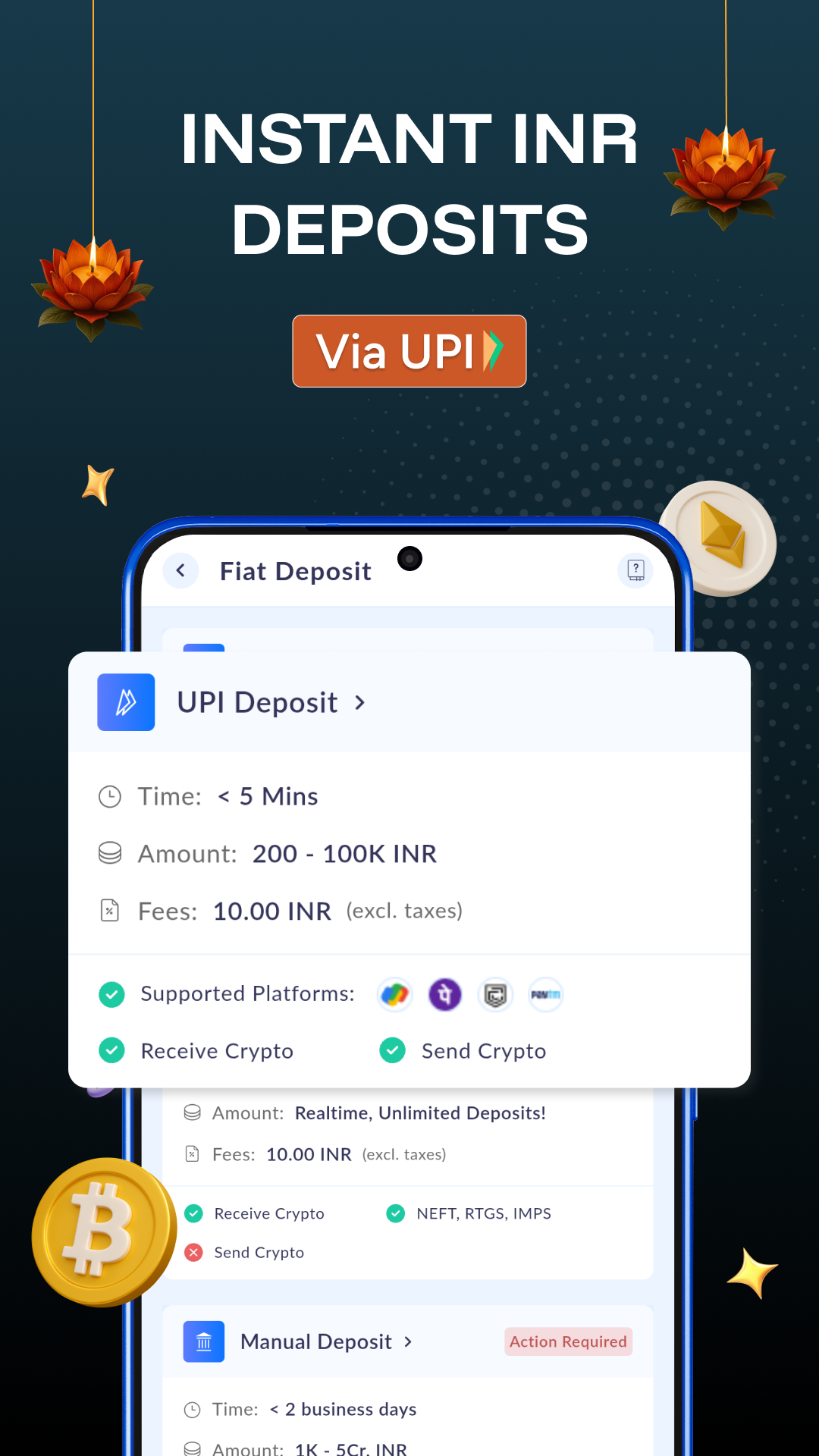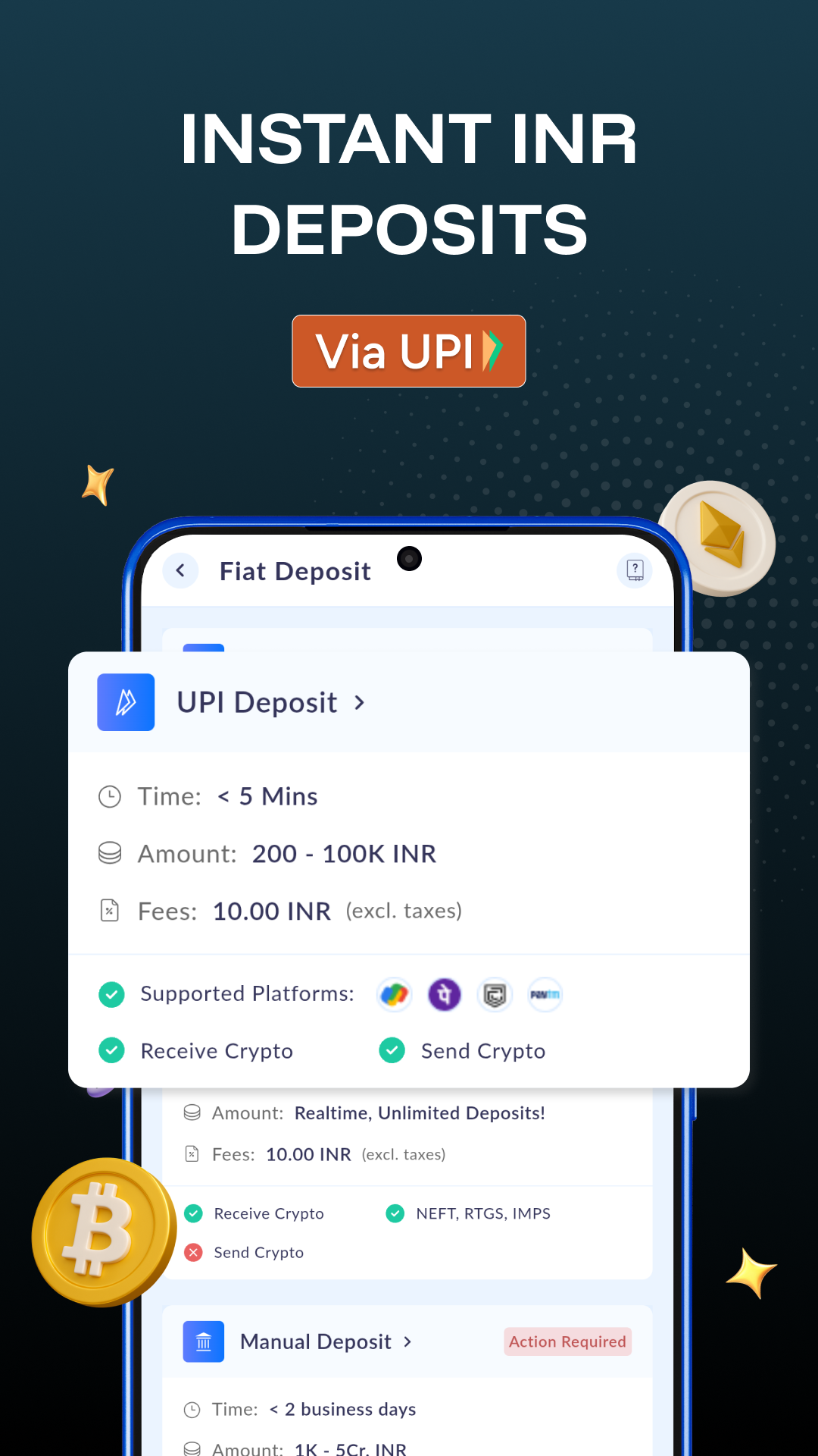 ● Instant UPI Deposits: Effortlessly deposit amounts up to ₹1,00,000 without delays.