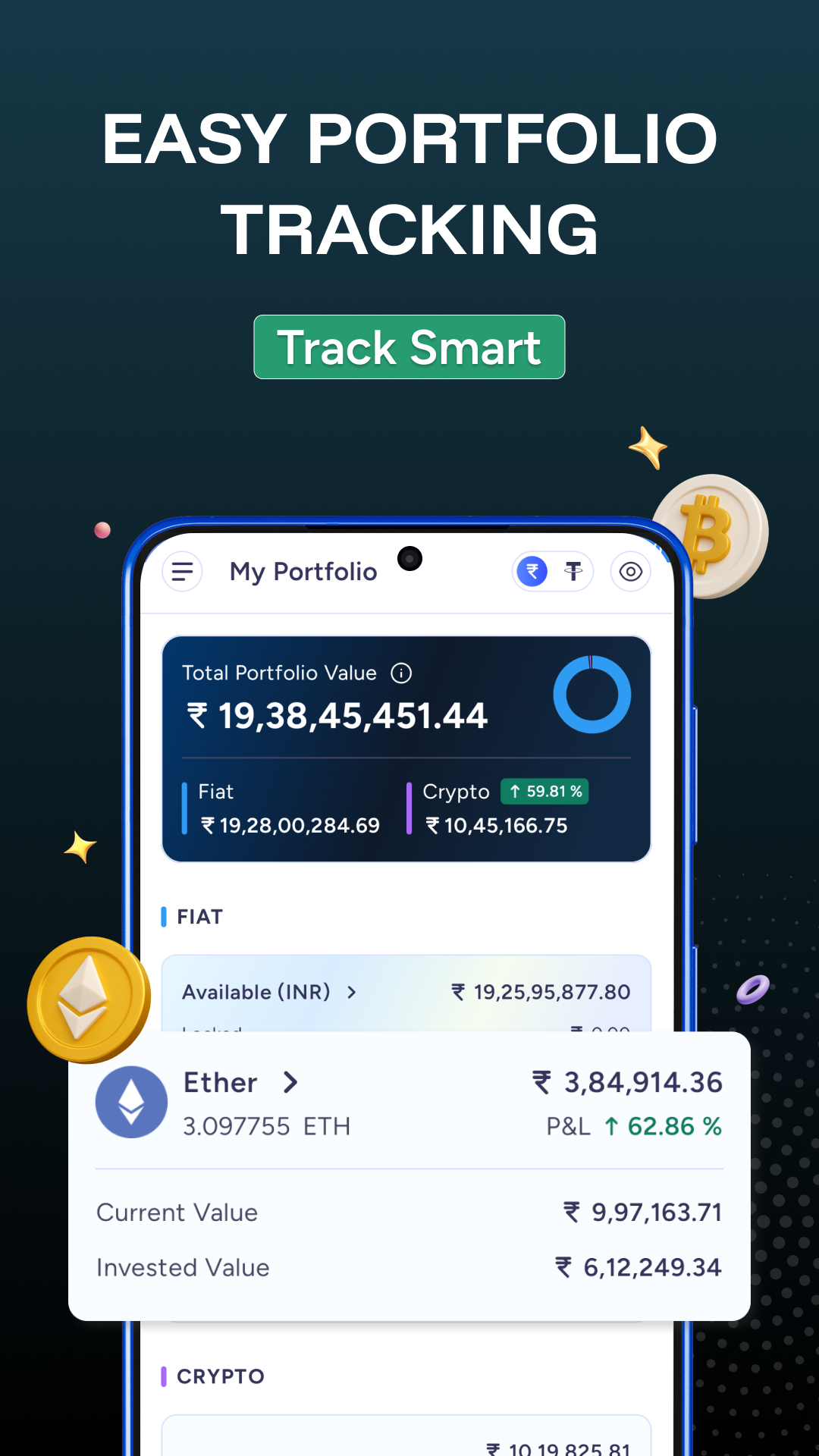 ● Effortlessly keep track of your crypto portfolio
