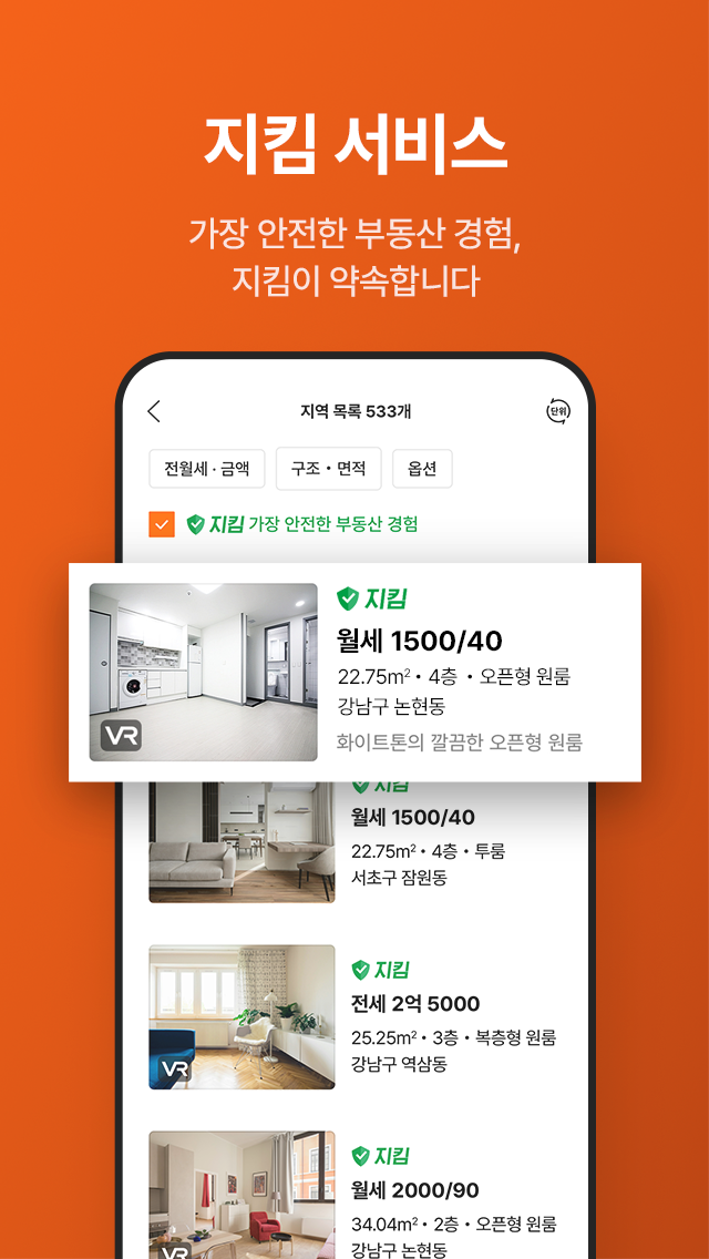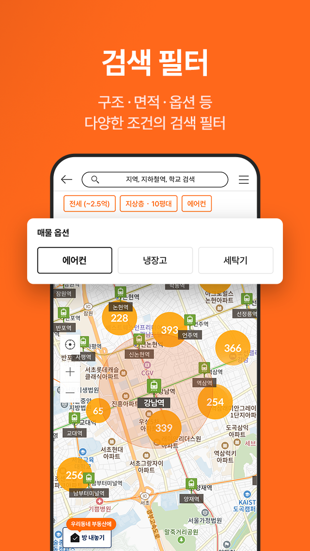 Looking for a studio apartment, one-bedroom or two-bedroom flat to rent in South Korea? Give Zigbang, the specialized rentals app, a try. Zigbang, the leading real estate app, provides you with an instant map view for rental properties. Utilize our user-friendly filters to discover real estate listings that align with your specific search criteria.