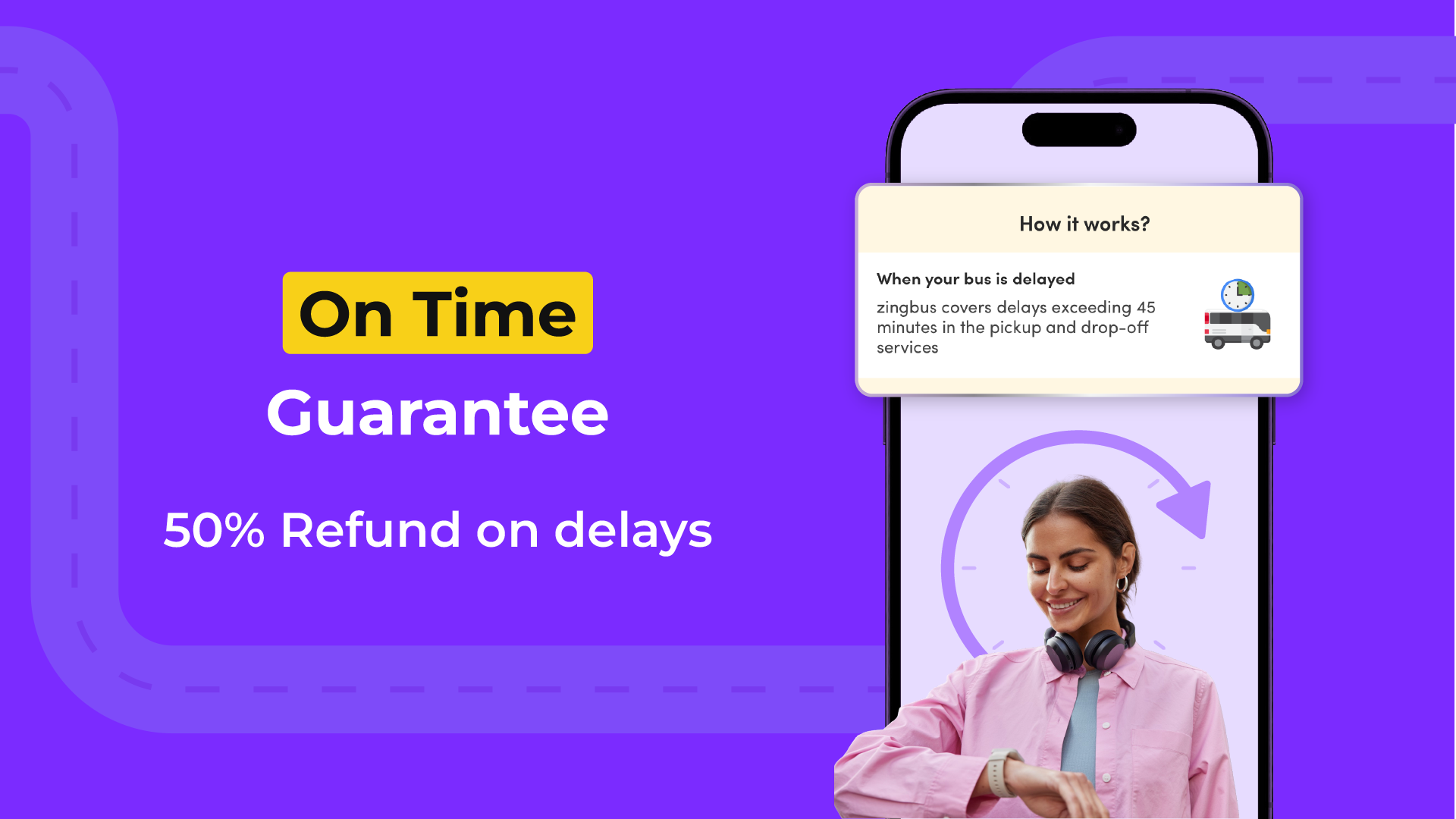 - On-Time Guarantee: If your bus arrives late, receive a 50% refund as our apology.