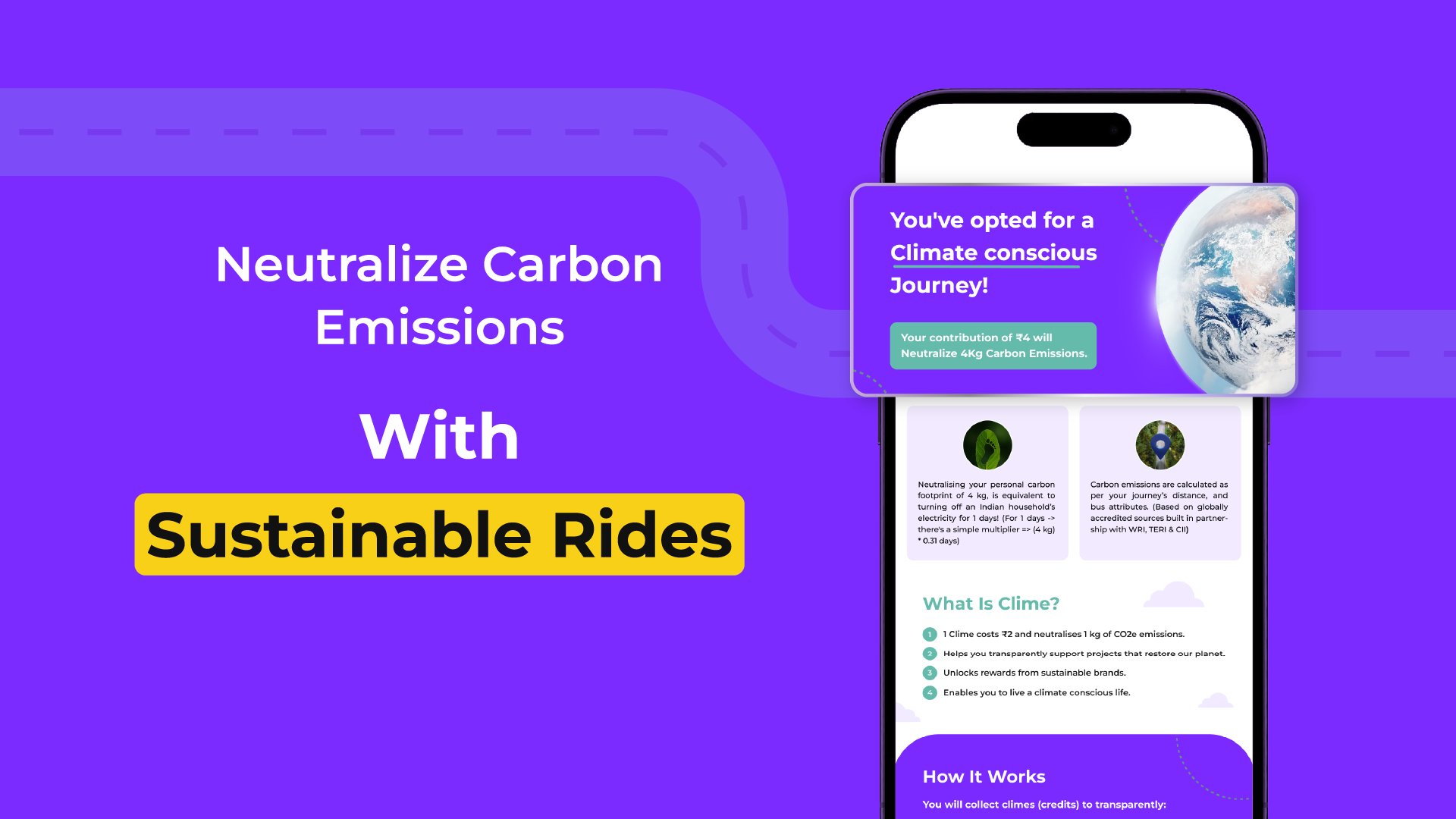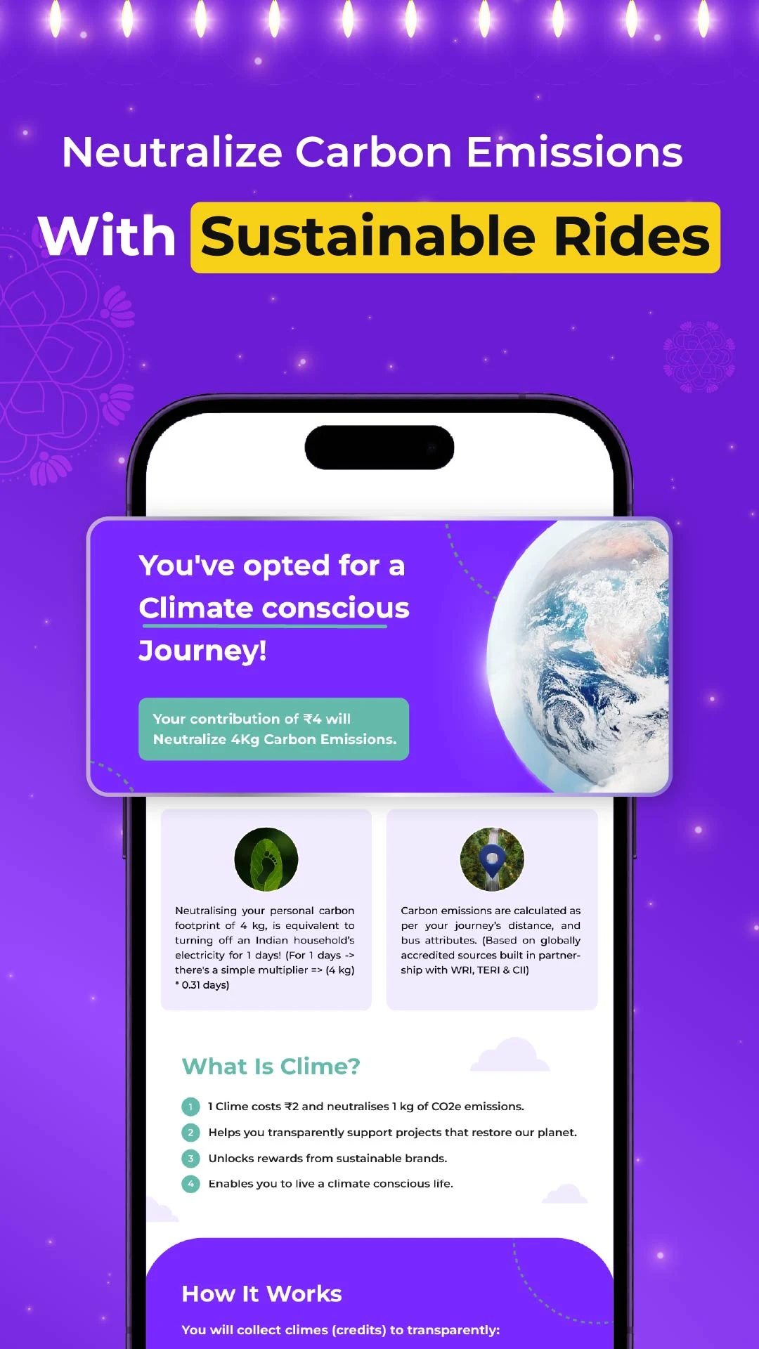 - Carbon-Neutral Rides: Partnering with Climes, we offset our carbon emissions through eco-projects in India, making your journey eco-friendly.