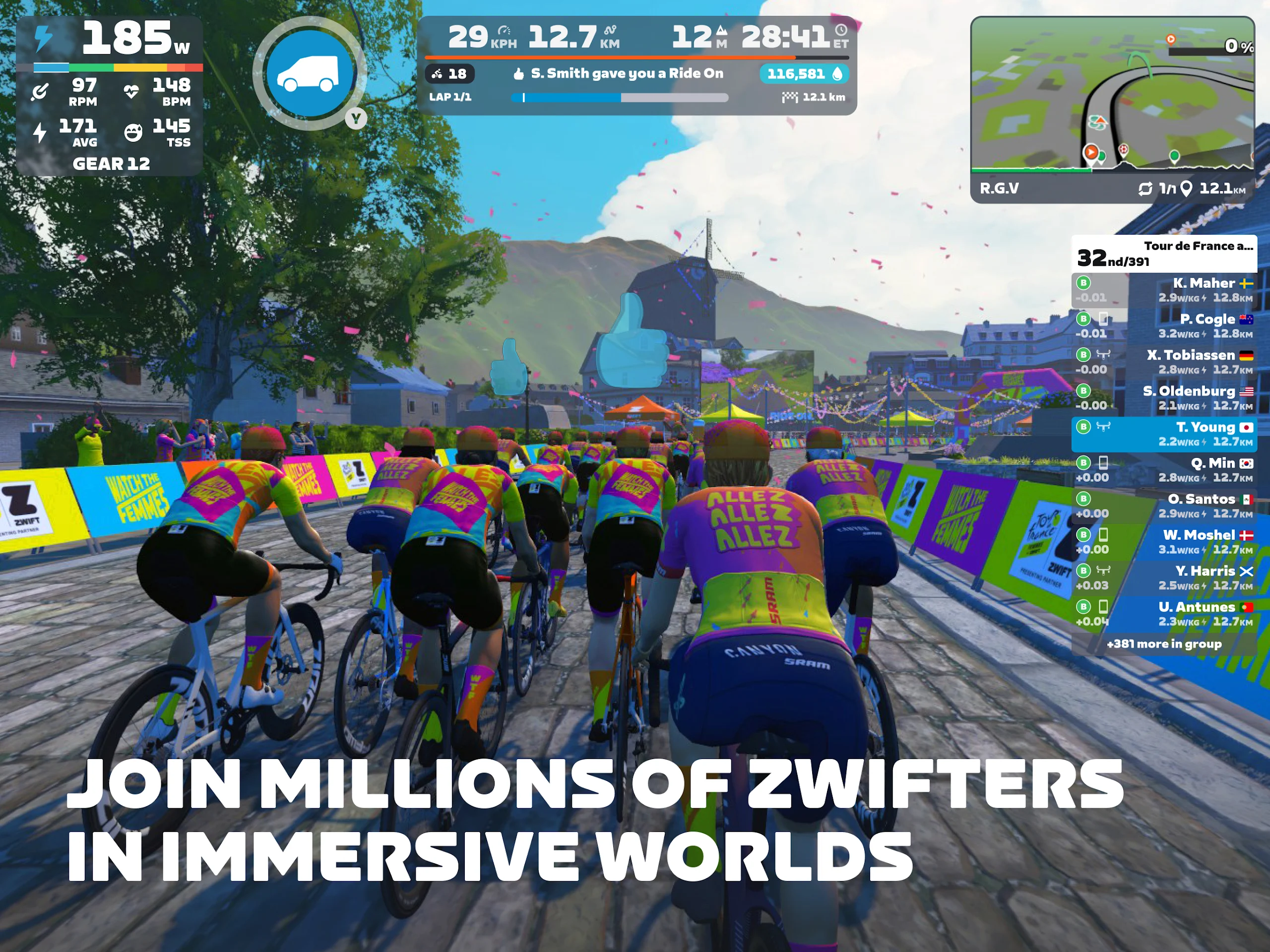 You can ride with thousands of others on Zwift. You can join group rides and races – and even get a draft from other riders – or just join one of the worlds and jump on with those riders when you want to. You can also do structured power-based workouts.